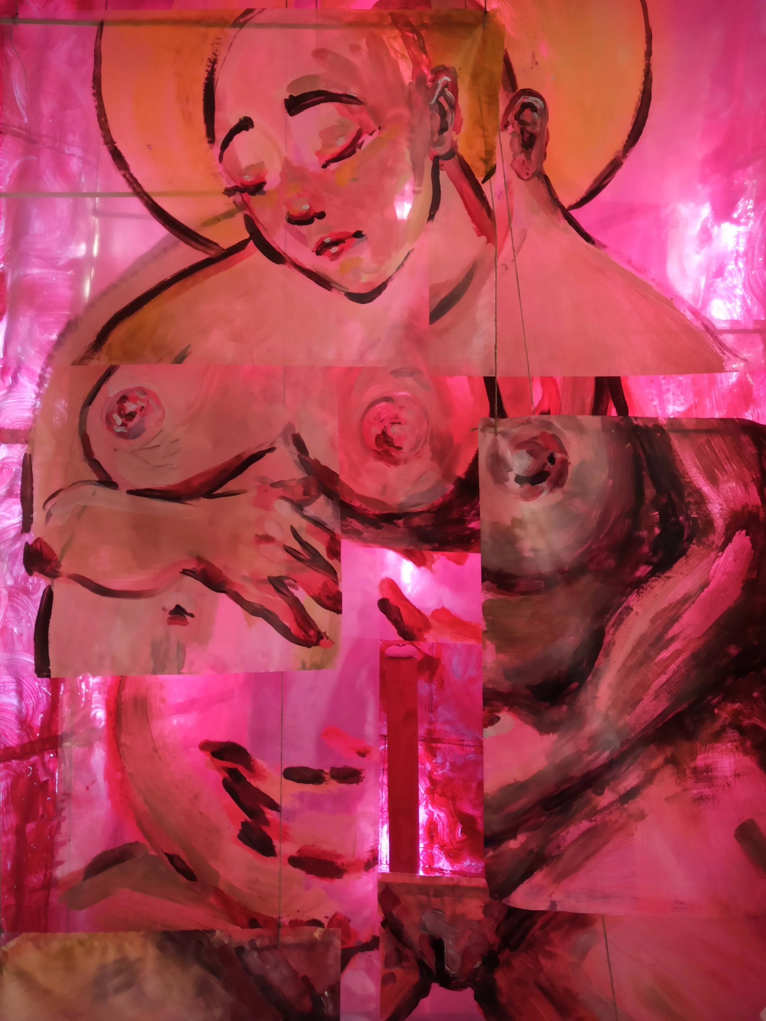 In utero reminisces on the past. It captures the Female essence as it was embodied in the prehistoric goddess of fertility, known for her splendor and abundance. It then weaves in the Catholic faith, pondering on Mary’s virginity as representative of female autonomy. It then grounds itself in the conquests and ongoing struggles of contemporary day-to-day women and their ability or lack thereof to bear life.